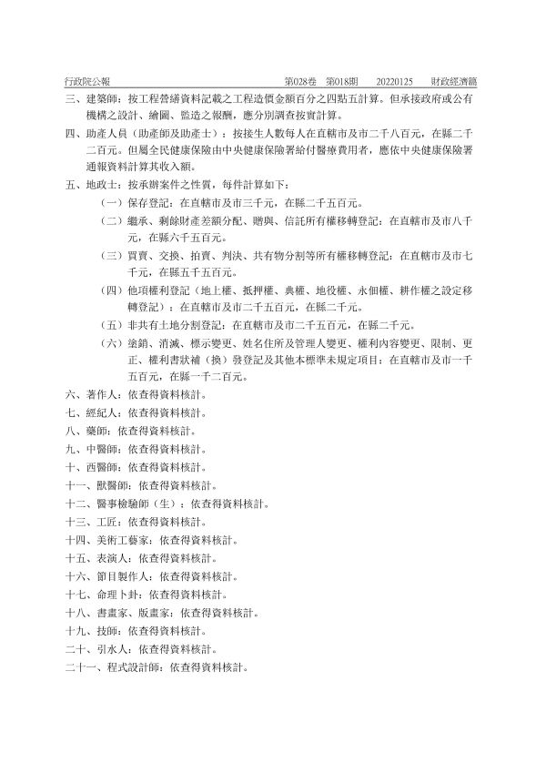 (財政部)訂定「稽徵機關核算一百十年度執行業務者收入標準」,自即日生效