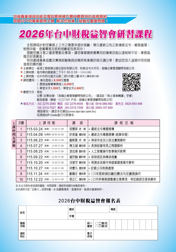 稅務專業課程線上報名表